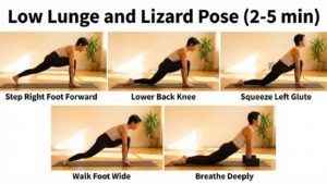 - Lizard Pose (2 min): Deepen the stretch for inner hips while breathing deeply.