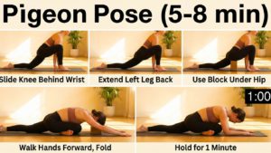 - Pigeon Pose (3 min): Release deep tension stored within the glutes using props.