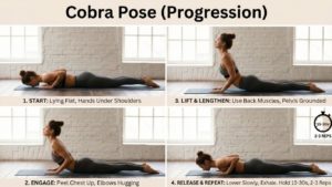 Cobra goes slightly deeper to build real strength in spinal muscles. It actively engages weak areas to help correct poor postural habits. Focus on lengthening your spine first rather than pushing for height. This movement strengthens your back muscles while stretching the front of your body. This creates a balance between flexibility and necessary muscular stability now.
